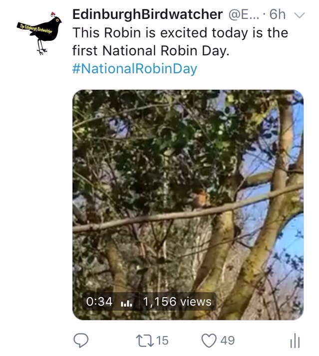 On the 21st December I heard it was the first National Robin Day about looking after small birds you can hear more about them by looking up their website http://www.nationalrobinday.co.uk. To show my support I posted a video of a Robin I filmed earlier in the year on Twitter and I received so many retweets & likes and my video got so many views which is more then most videos I post on Twitter so I thank everyone who viewed, liked & retweeted my video.