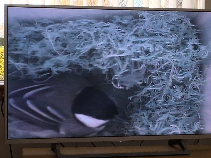 I do have exciting news my Great Tit has returned to the camera nestbox. After the weekend I saw The Ring Necked Duck, on the Monday morning I thought I checked the camera nestbox on the tv and hoping she will be back and bingo there she was busy preparing her nest, I’m so excited she had returned. She’s bit late coming this year but I think it is due to a lot of bad weather we’ve been having, I will tell you more on her updates in the next blog but she’s at the moment laid 6 eggs.