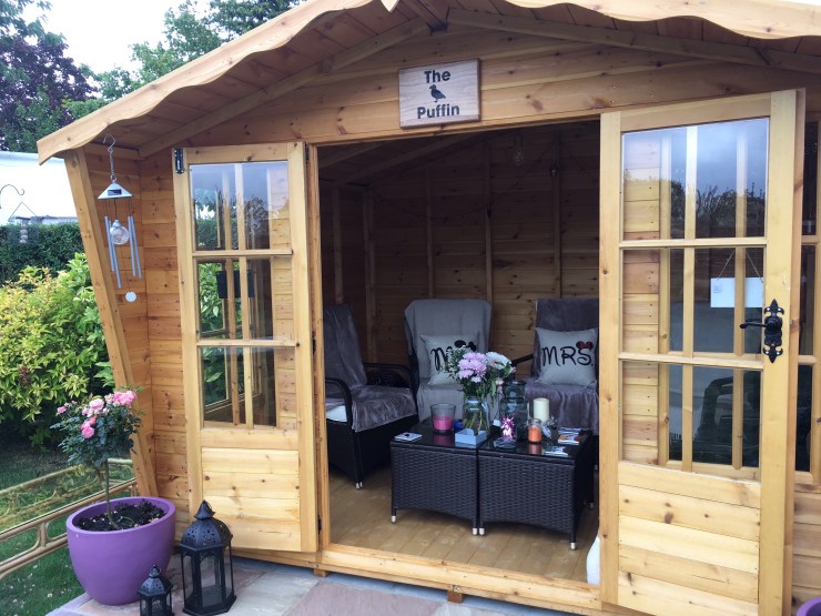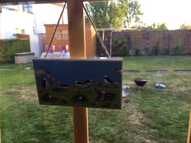 Lots been happening in July not so much Birding I’m afraid, I’ve not really had time it’s been a busy one with other activities. My family decided to get a Summer House at the end of June and we decided to have a Puffin theme after seeing The Puffins in Mull, you can read about that trip in my last blog. In the Summer House we have a few Puffin stuff inside two pictures one is a plaque painted by my good friend Karen Hartnell and a couple of coasters, we have been sitting in it a lot during this amazing heatwave we have been having with lots of BBQs and we decided to give the Summer House a name it is called ‘The Puffin’ and we have the plaque to prove it I got it made through Timpsons.