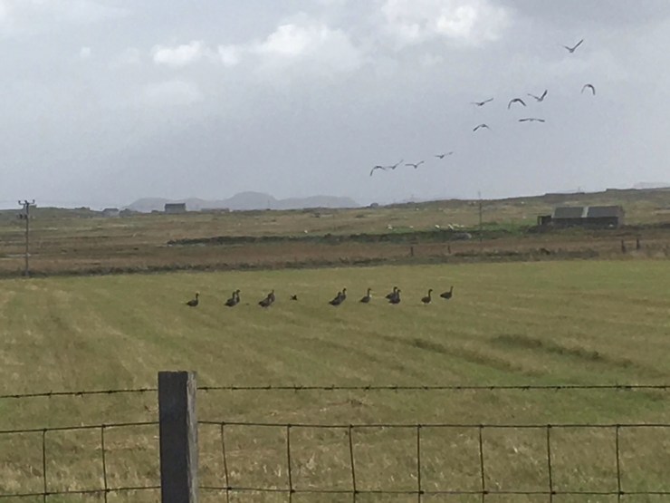 I started my Birding whilst on holiday in Benbecula in The Outer Hebrides it was great to be back there. Unfortunately the weather wasn’t great but I still managed to go out on walks there was only one really wet day but this time I couldn’t leave my window open due to high winds so I couldn’t hear the sound of birds in the morning I like listening to in the morning. On my walk to Culla Bay I took this photo of nearby Graylag Geese on the field, during the week I saw a lot of Geese flying around and I could hear them too but it’s always great to see Geese at this time of year, to me they are the first sound of Autumn.