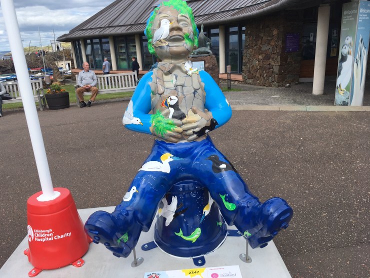 At the beginning of July I went to visit The Scottish Seabird Centre in North Berwick. On arrival I was greeted by Oor Wullie, for those who don’t know he is a comic book character that appears alongside The Broons but has his own annuals. Throughout Scotland there have been different type of Wullie’s and the one outside The Scottish Seabird Centre was my favourite design.