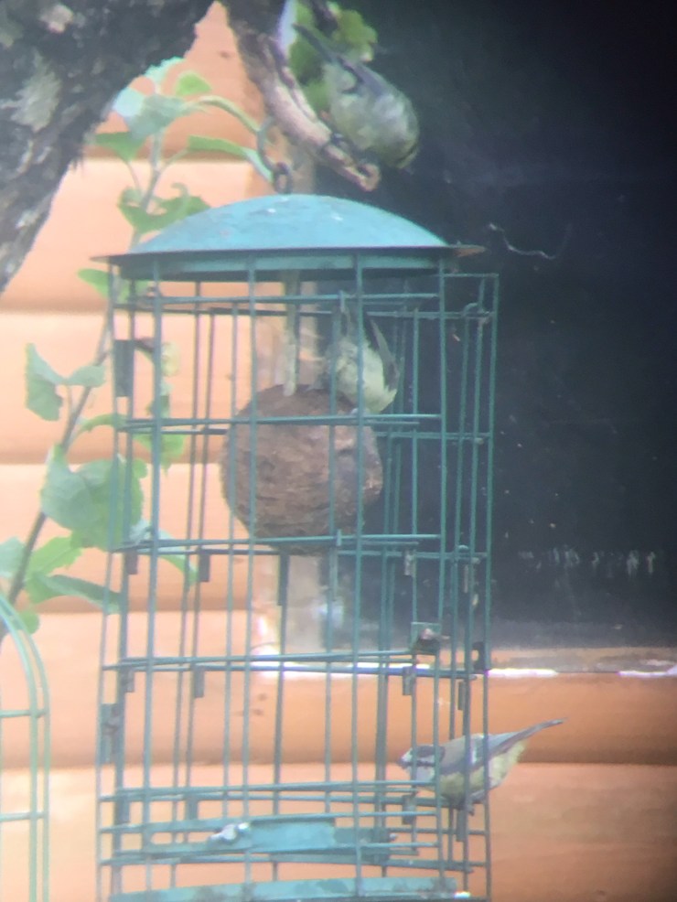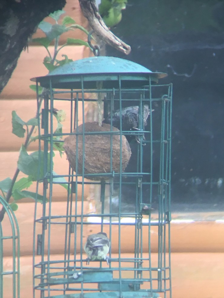 One morning I noticed lots of birds everywhere in the garden and noticed a lot of activity at the coconut feeder so decided to have a Garden Birdwatch. There were lots of Starlings, Blue Tits & Great Tits at the feeder I managed to get a few photos.
