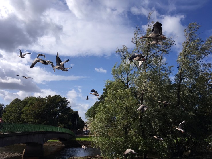My first outing for the new season was The River Esk in Musselburgh on arrival was full of Canada Geese, Graylag Geese & different type of Gulls. All was going well with the birding but then a dog walker arrived and the dog jumped into the water causing all the birds to fly away, though I did managed to get a great snapshot of the birds flying to the different side of The River.