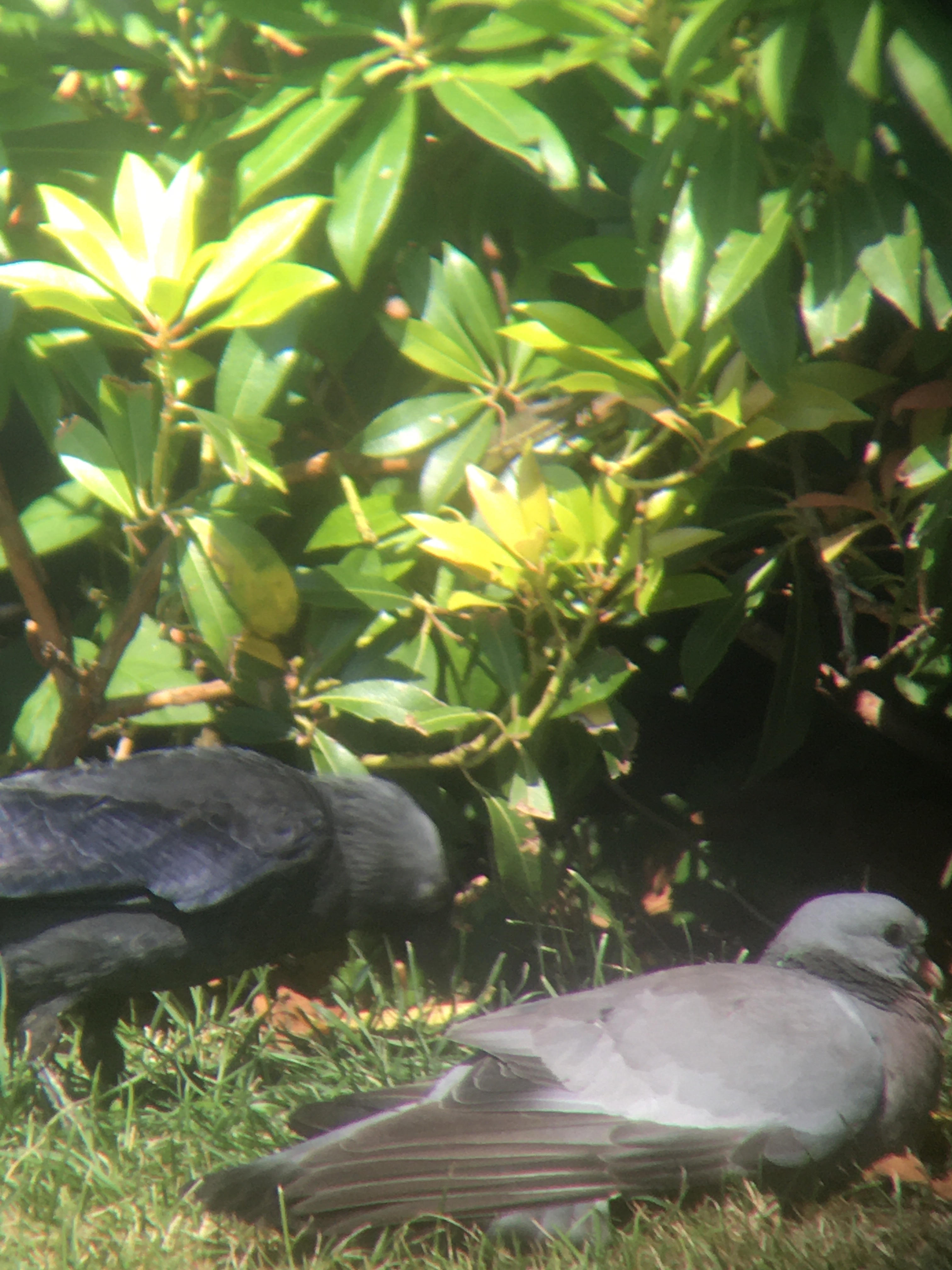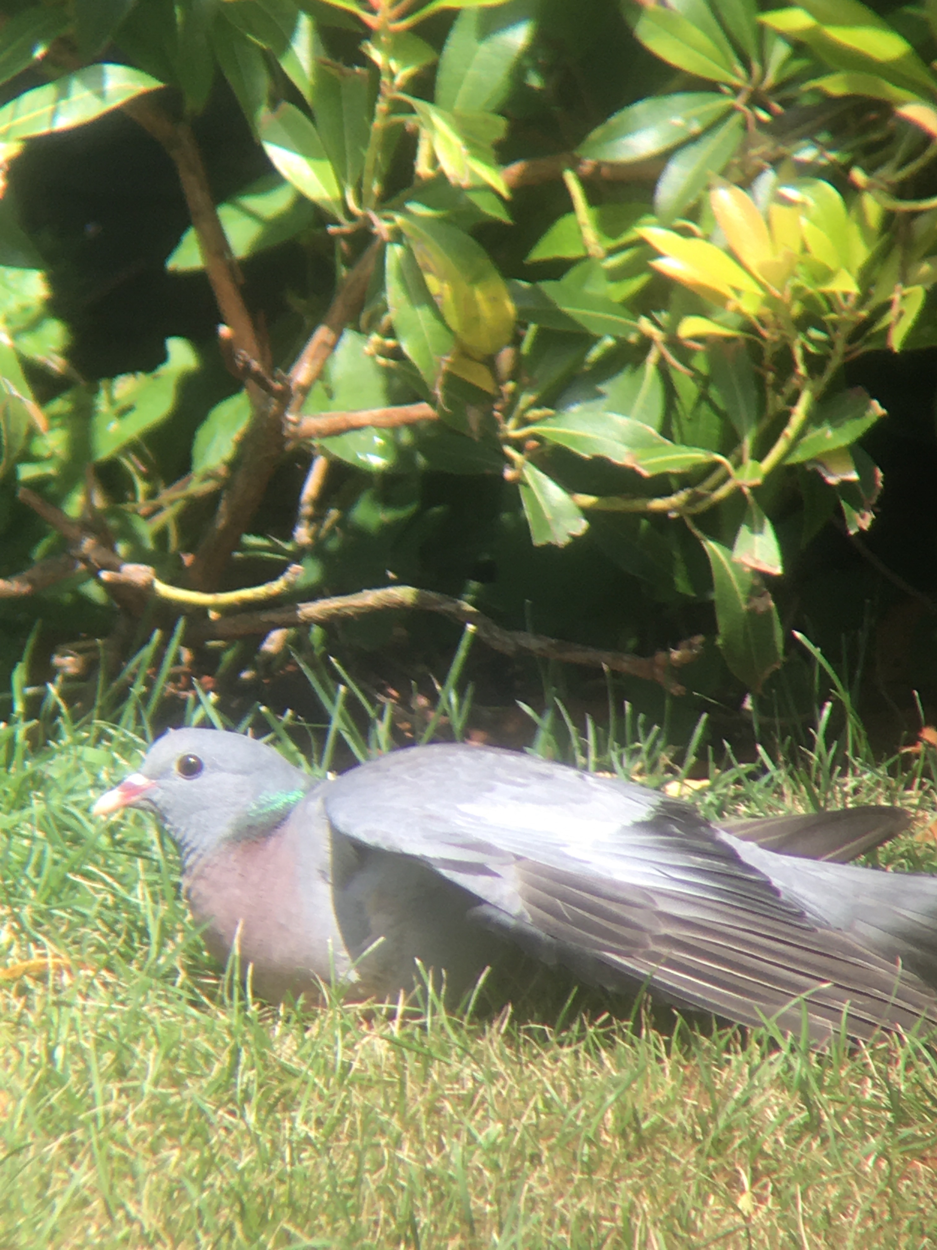 Yesterday was the hottest day of the month and the garden was full of birds. The Stock Dove appeared and had a sunbathe followed by Blue & Coal Tits & a Jackdaw.