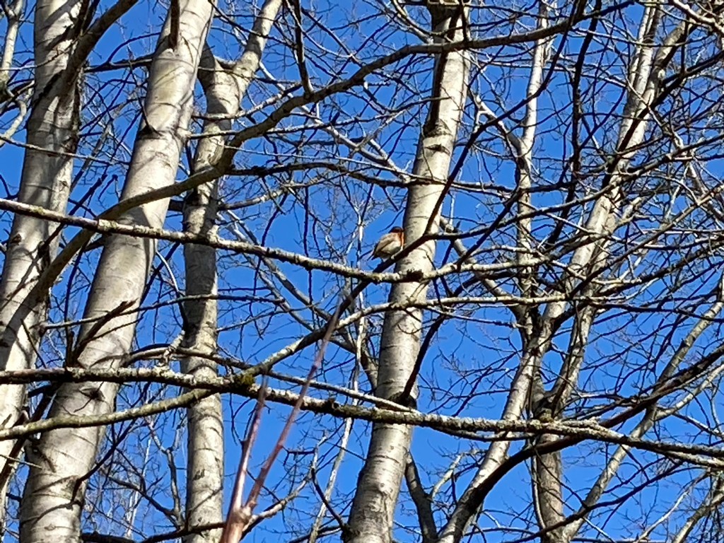 It was a beautiful morning in Cammo and it was a much better day then it was last time I was there. The highlight was I heard my first Chiffchaff of the year and I enjoyed watching a Robin sing and a dangling Blue Tit.