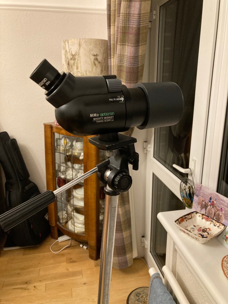 In December I was very happy to get my telescope back after it being repaired for so many weeks. I have missed it very much and was happy to set it up and have a look out . The first photo I took out of my telescope was a Woodpigeon.
