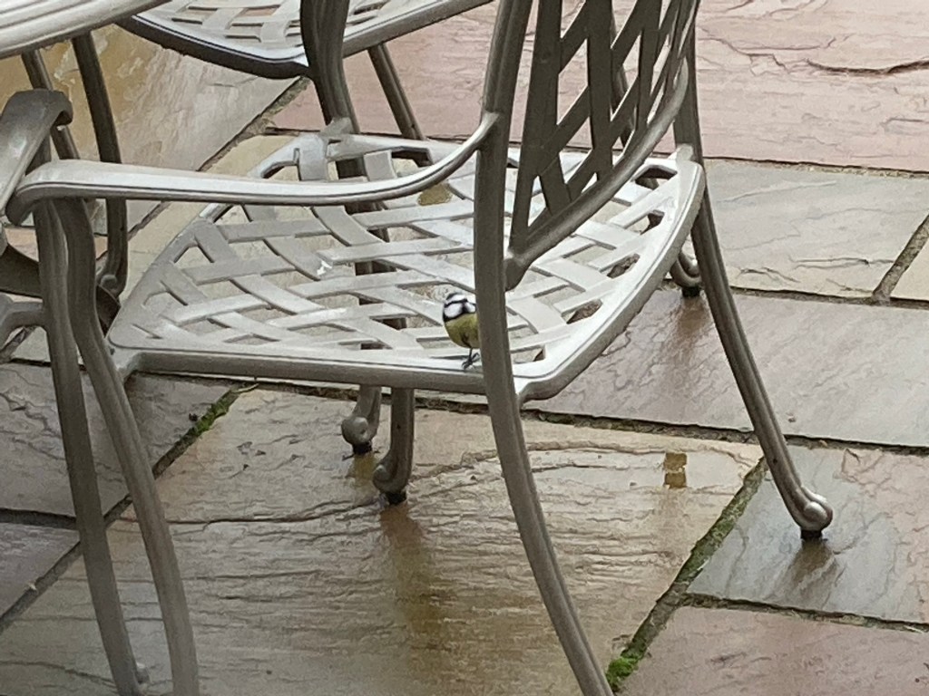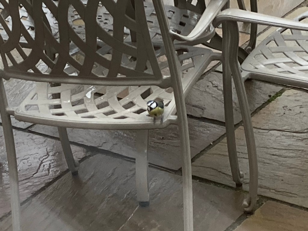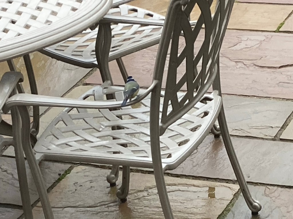 Next day I noticed a Blue Tit was bobbing about on the chairs and gave me good close up views.
