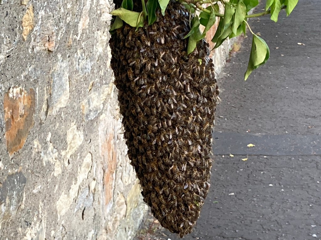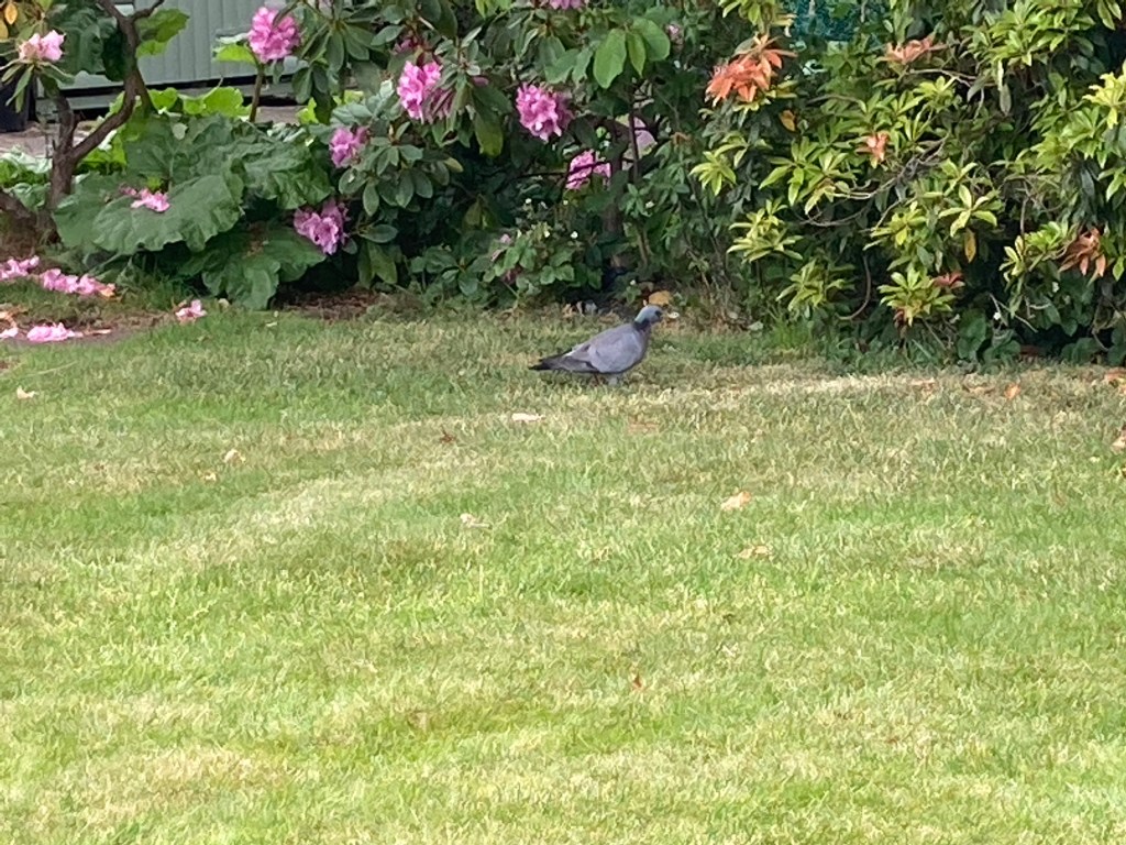 Later that evening I heard a swarm of Wasps were seen dangling on a tree on the road across the road. While I was watching Springwatch I decided to have a look. It was massive and impressive to see so I took a photo and quickly left. It was later moved in the evening. The next day I was sitting out in the garden and saw a Stock Dove under the feeders. I’ve not seen one for awhile since last year so it was nice to see one.