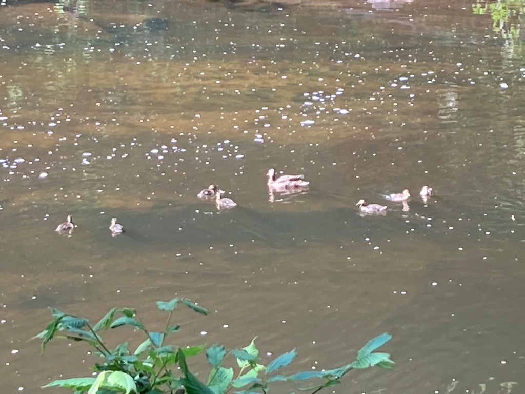 After recharging my batteries I went Birding down The River Almond Walkway. It was a beautiful sunny morning going through the woods listening to the birds and when I got to the bridge I noticed a big bird flying towards me it moved to the side and it was a Heron. Down along the walkway I spotted a Mallard and her ducklings which was my first time seeing them this year. There were 7 of ducklings so that was great to see so I watched them swim with their mother up the River it was a lovely day.