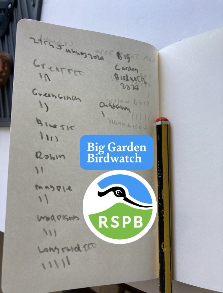 I hope you all took part in The RSPB’s Big Garden Birdwatch at the weekend, I did mine on Saturday and had a great hour my results were 3 Great Tit, 2 Greenfinch, 4 Blue Tit, 2 Robin, 2 Magpie, 3 Woodpigeon, 5 Long Tailed Tit & 1 Chaffinch.