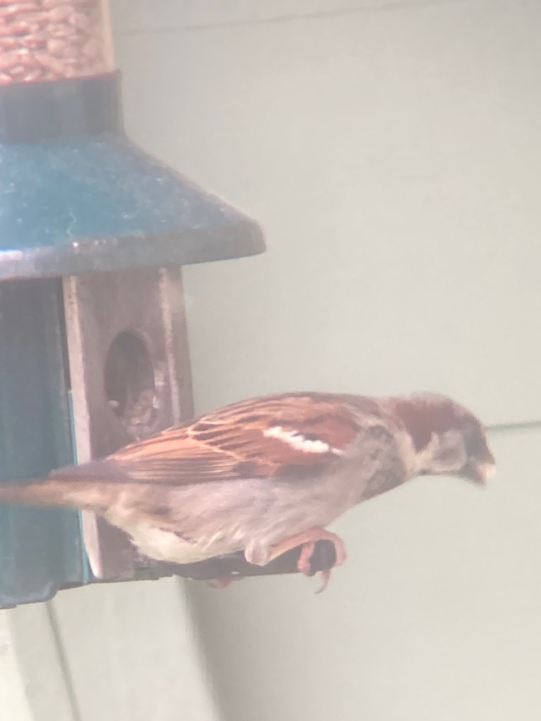 It’s not just Starlings I’ve been watching in the garden recently my other feeders which for some reason were being neglected by birds started attracting them back mainly House Sparrows have been at them but also Blue & Great Tits have been at them too.